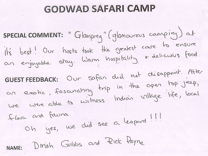 ABOUT US | OUR TENTS | FACILITIES | GALLERY | HOW TO REACH | RESERVATIONS | TESTIMONIALS | CONTACT US